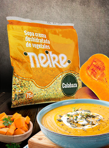 Sopa de calabaza con vegetales deshidratados